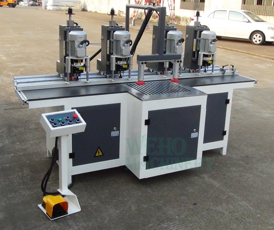 Esta máquina es ideal para perforar orificios para bisagras. La perforación y la sujeción de las piezas de trabajo se controlan neumáticamente. La entrada y el movimiento del cabezal de perforación se controlan neumáticamente. La profundidad de perforación se puede ajustar.