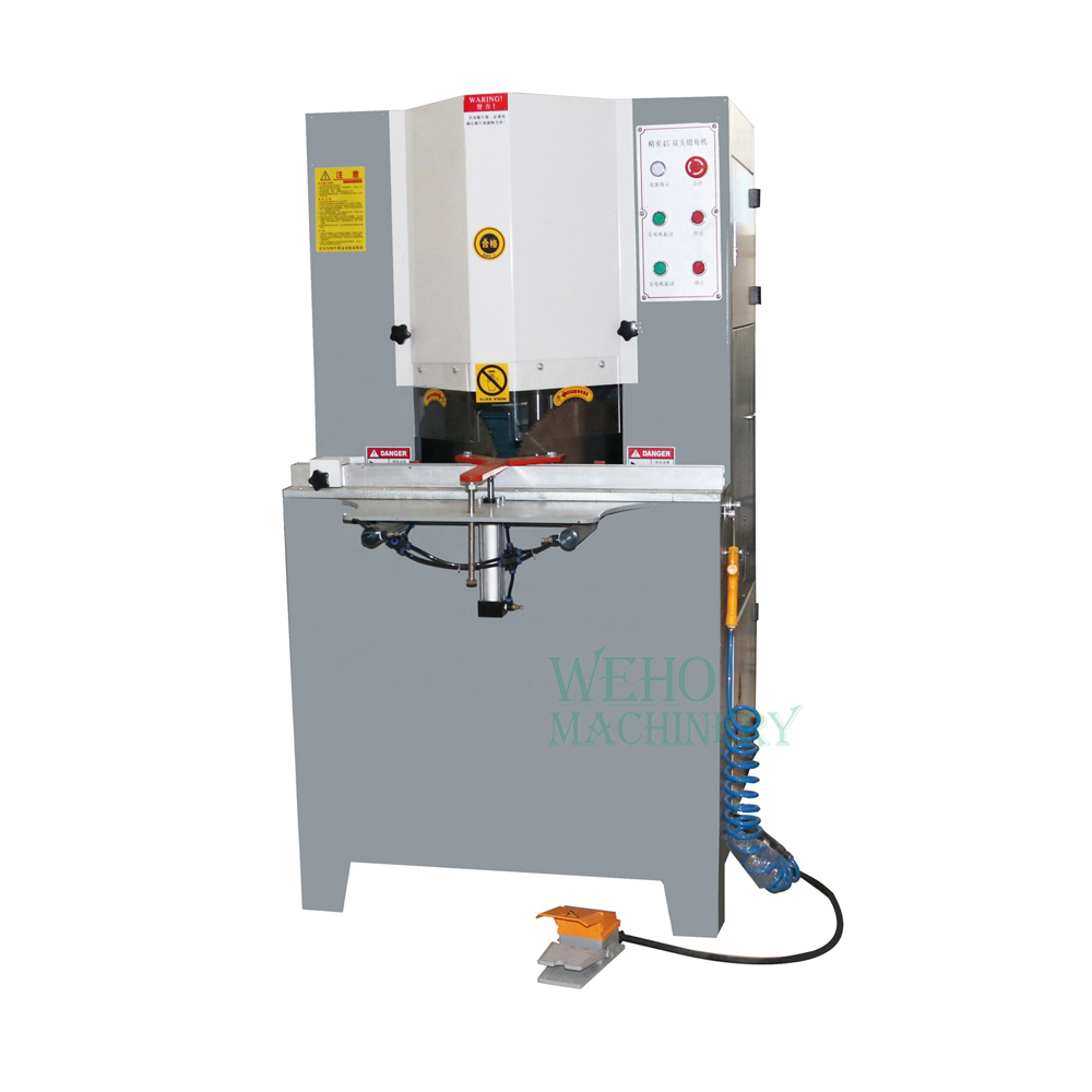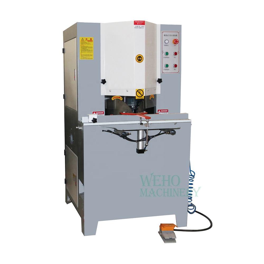 El husillo principal funciona a alta velocidad. Puede cortar dos (uno a la izquierda y otro a la derecha) a 45 grados al mismo tiempo con una sola acción.