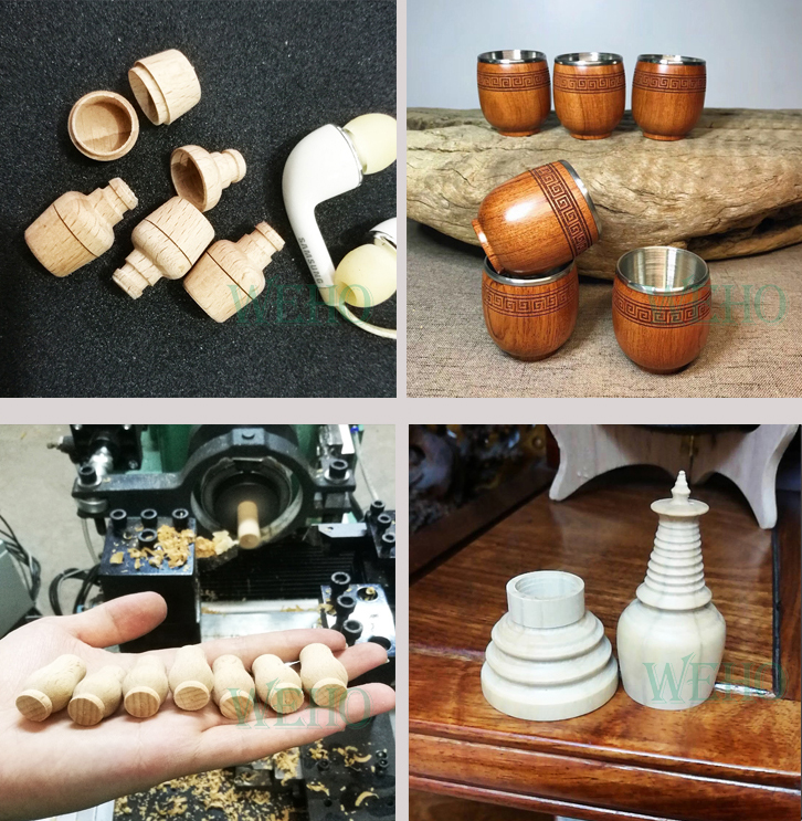 Máquina de torno de madera con alimentación automática de tres cortadores para hacer agujeros para cuentas de madera, manijas y porta cigarrillos