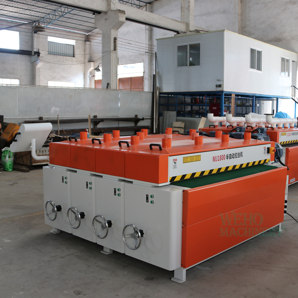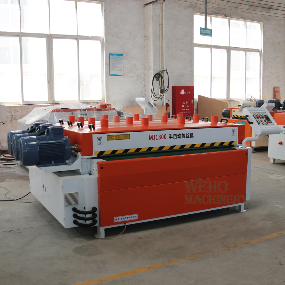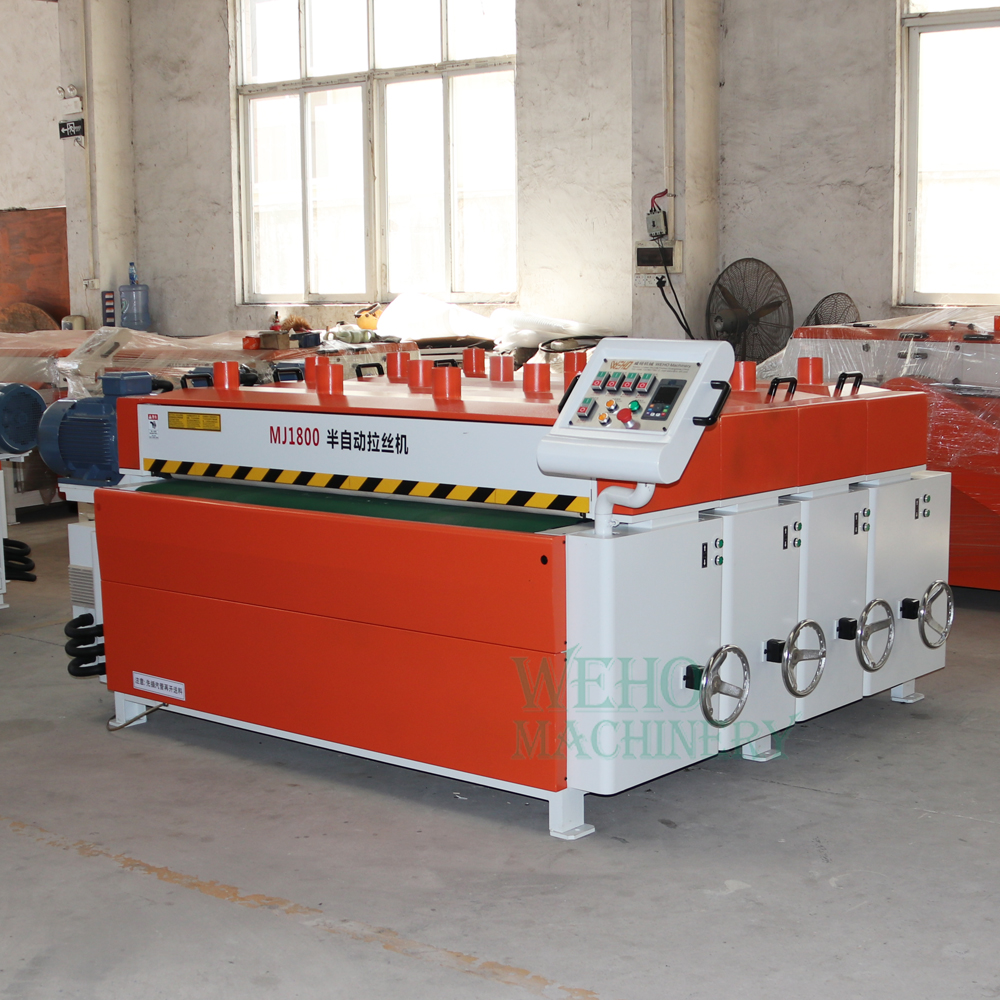 El ancho máximo de trabajo incluye: 400-600 mm, 800 mm, 1000 mm, 1300 mm, 1600 mm u otros. El cepillo de alambre de acero inoxidable se utiliza principalmente para eliminar el grano suave y el cepillo de alambre de nailon se utiliza principalmente para limpiar la superficie del panel.
