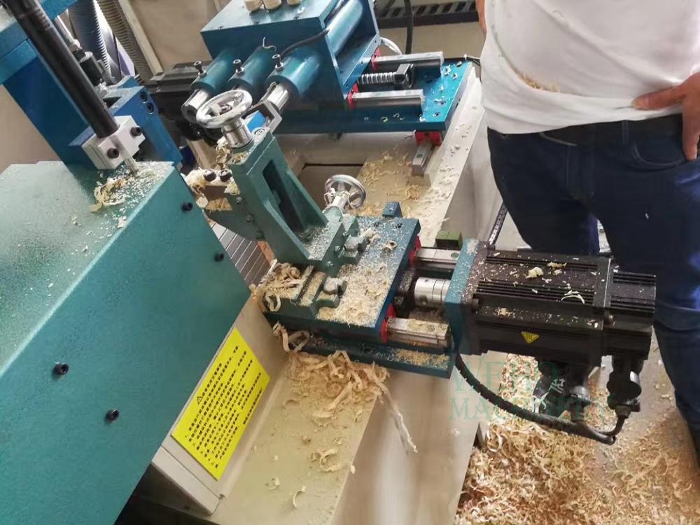 La máquina para fabricar cuentas de madera tiene cuatro servomotores que controlan el corte de la cuchilla de moldeado posterior, la alimentación de la varilla de madera, la perforación o moldeado de las cuentas desde el frente y el corte desde la parte superior. Tiene una vida útil muy larga y es la pieza estándar. Si hay algún daño, reemplácelo directamente sin comprender la técnica de afilado.