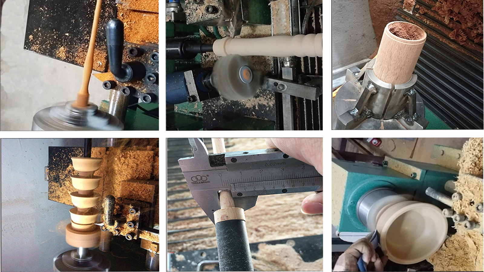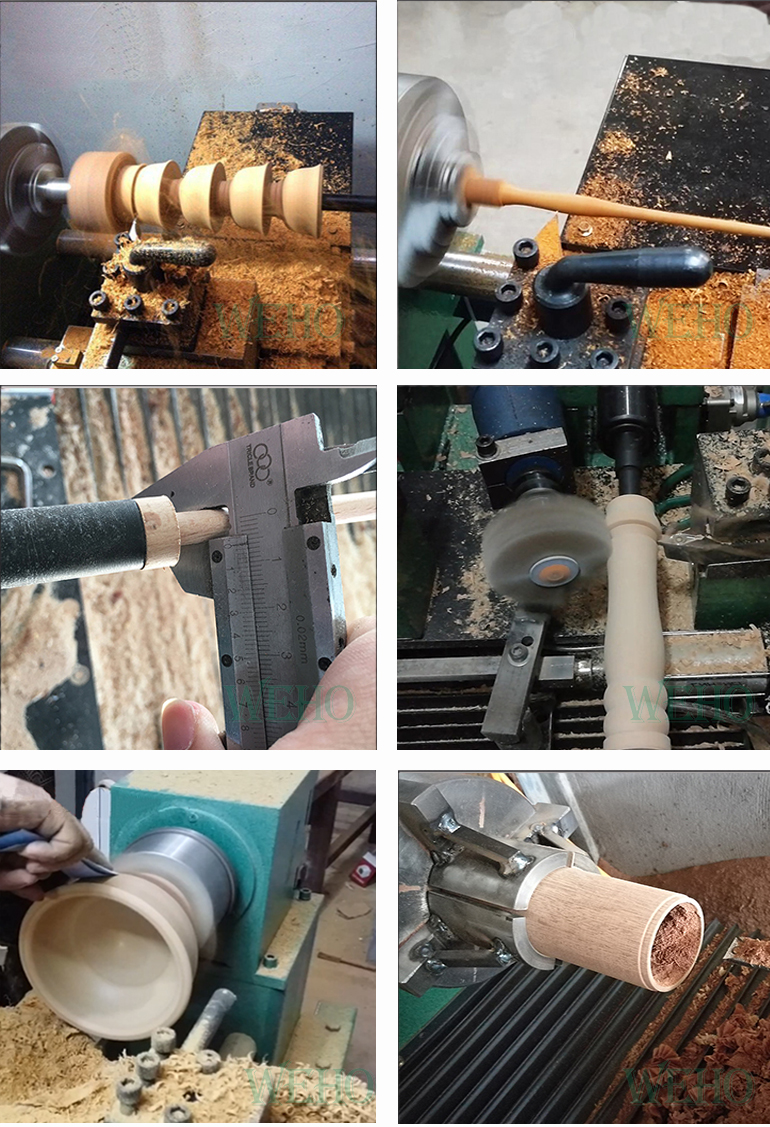El torno para carpintería de alta precisión puede ayudarle a fabricar cientos de tipos de productos de madera, como palos, cuencos, tazas, platos, manijas, pasamanos, etc.