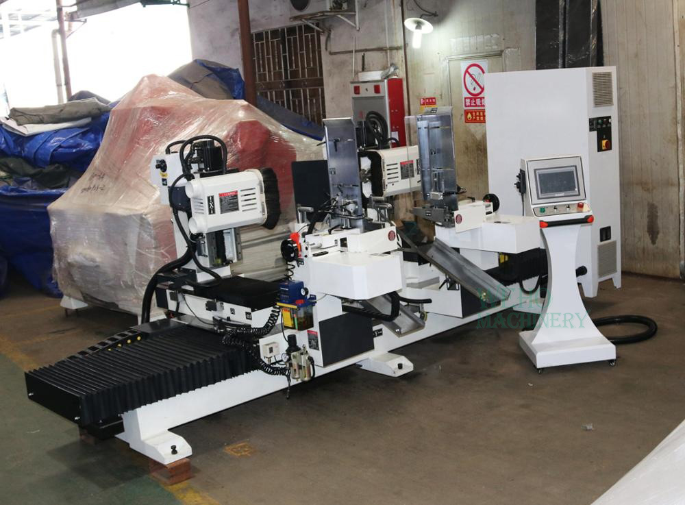 Máquina espigadora de doble extremo con alimentación pasante para madera, 5 ejes con funciones de espigado de doble extremo.CARACTERÍSTICAS TÉCNICAS DE LA TENADORA DOBLE CNC