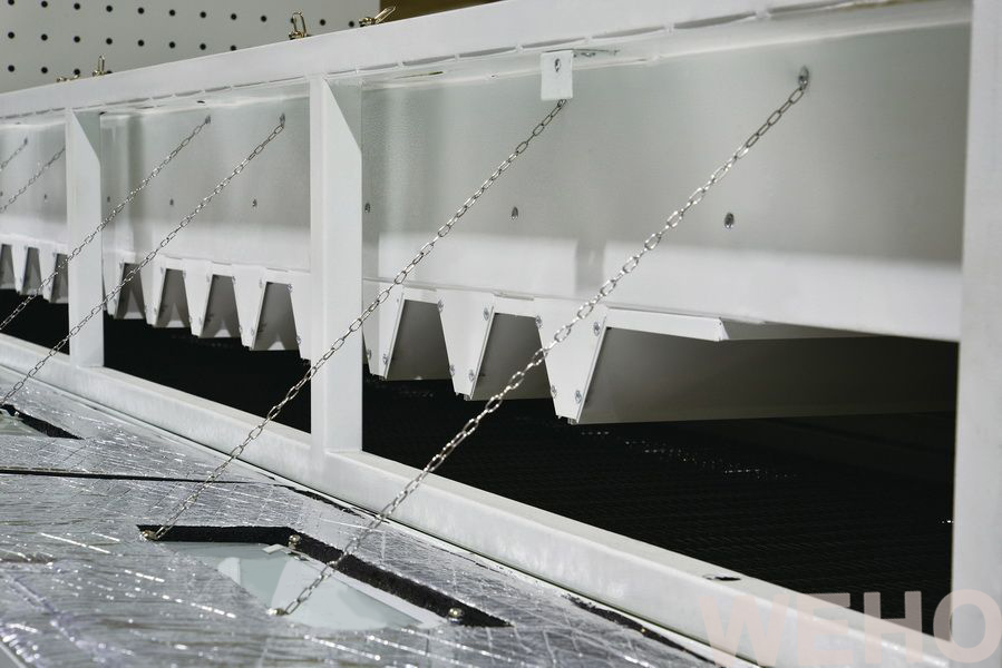 El aislamiento térmico de 50 mm de espesor ayuda a mantener la temperatura interna y reducir la pérdida de potencia. La velocidad de trabajo se puede ajustar mediante un variador de frecuencia. El aire interno y externo se recicla, lo que ayuda a reducir el consumo de energía.