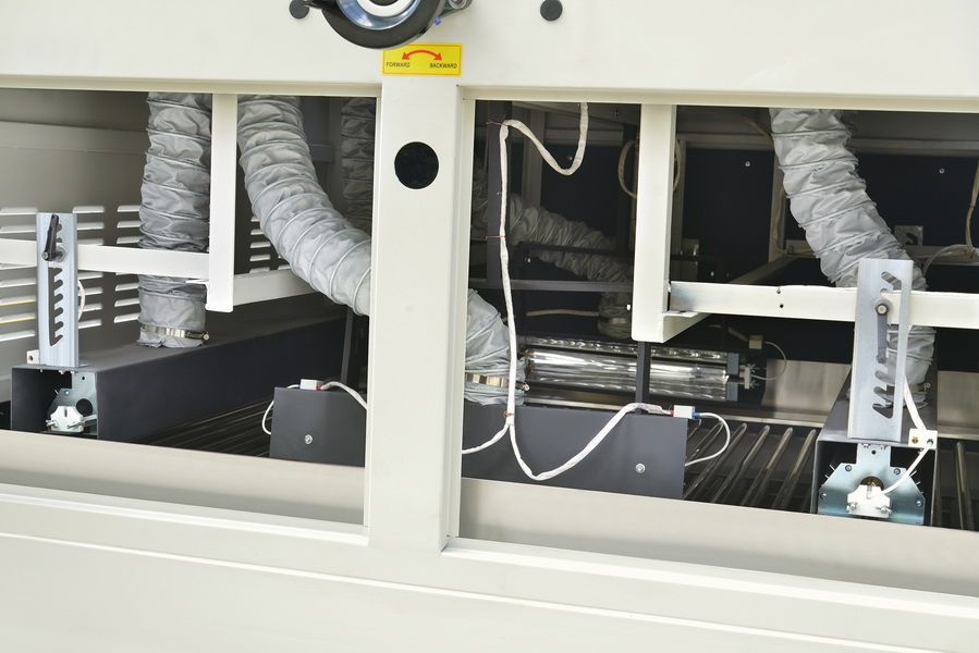 Ampliamente utilizado para secar artículos planos que están recubiertos con pintura coagulada UV. El interior del módulo de la carcasa de la lámpara disfruta de una buena aireación, lo que prolonga la vida útil de las lámparas UV, los transductores y el condensador de la máquina de secado UV de seis lámparas.