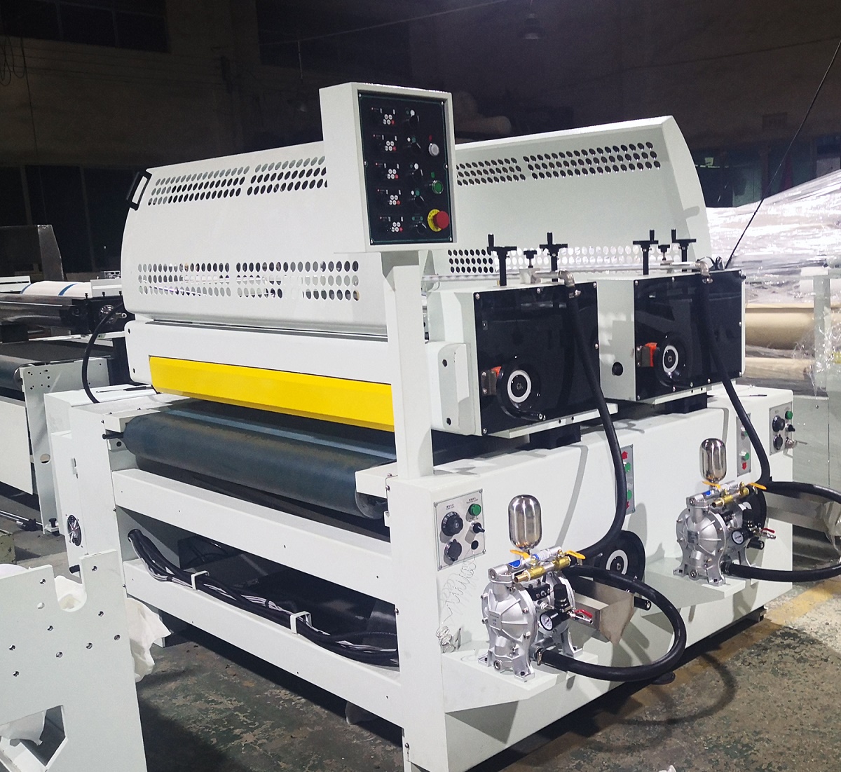 Se puede combinar con transportador, máquina de curado UV, lijadora, máquina de eliminación de polvo, etc. para combinar la línea de recubrimiento UV.