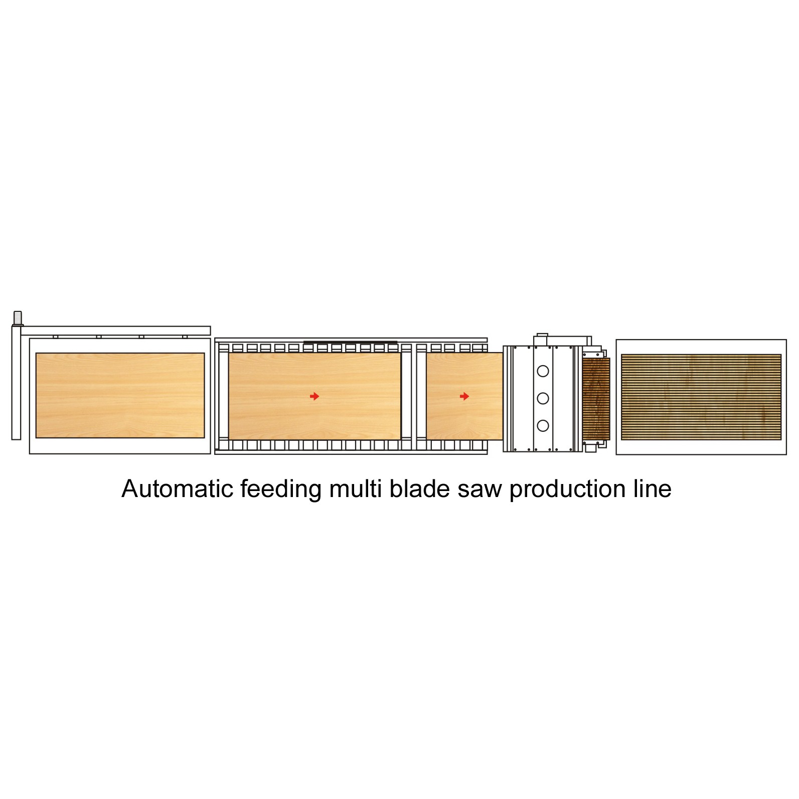 Diseño de línea de proceso de sierra de corte de hojas múltiples para carpintería